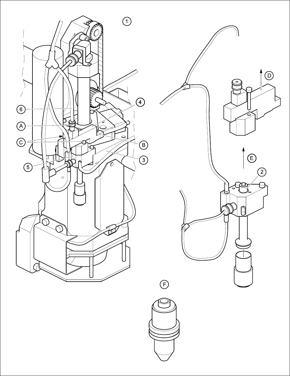 E Ziehen Sie die Vakuumdüse senkrecht nach oben heraus und warten Sie sie (siehe Abschnitt 9.6.5.3).