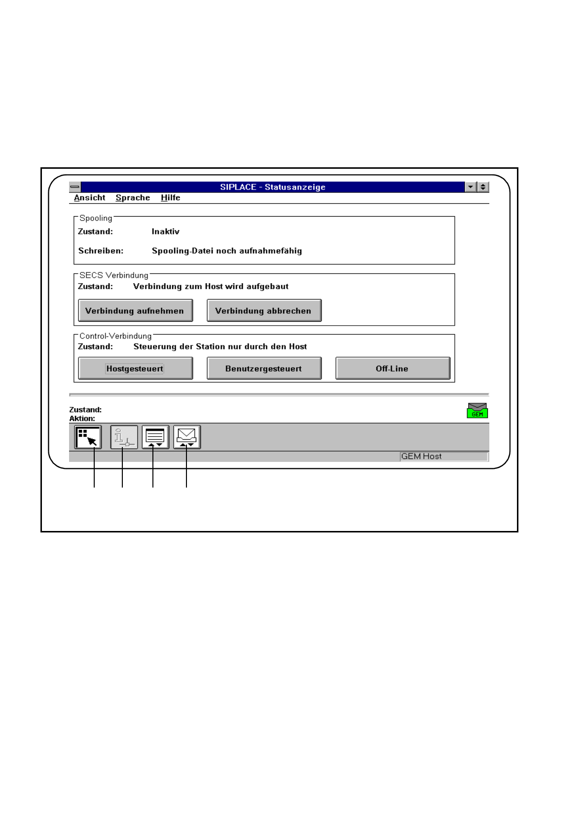 Betriebsanleitung SIPLACE 80S-20/F4/F4-6 11 Stationserweiterungen/Optionen Ausgabe 07/97 ab Softwareversion SR.403.xx 11.9 GEM-Schnittstelle 11 - 69 ● Control Verbindung (S iehe auch Abschnitt 11.9.2.3 GEM Defaulteinstel…