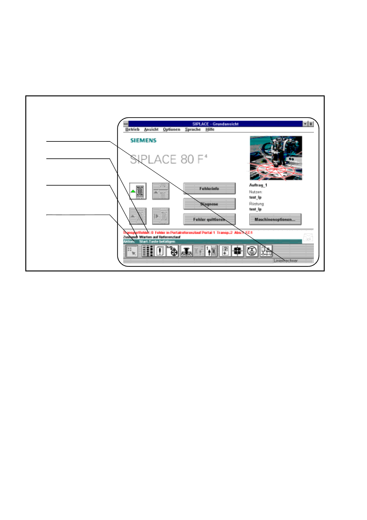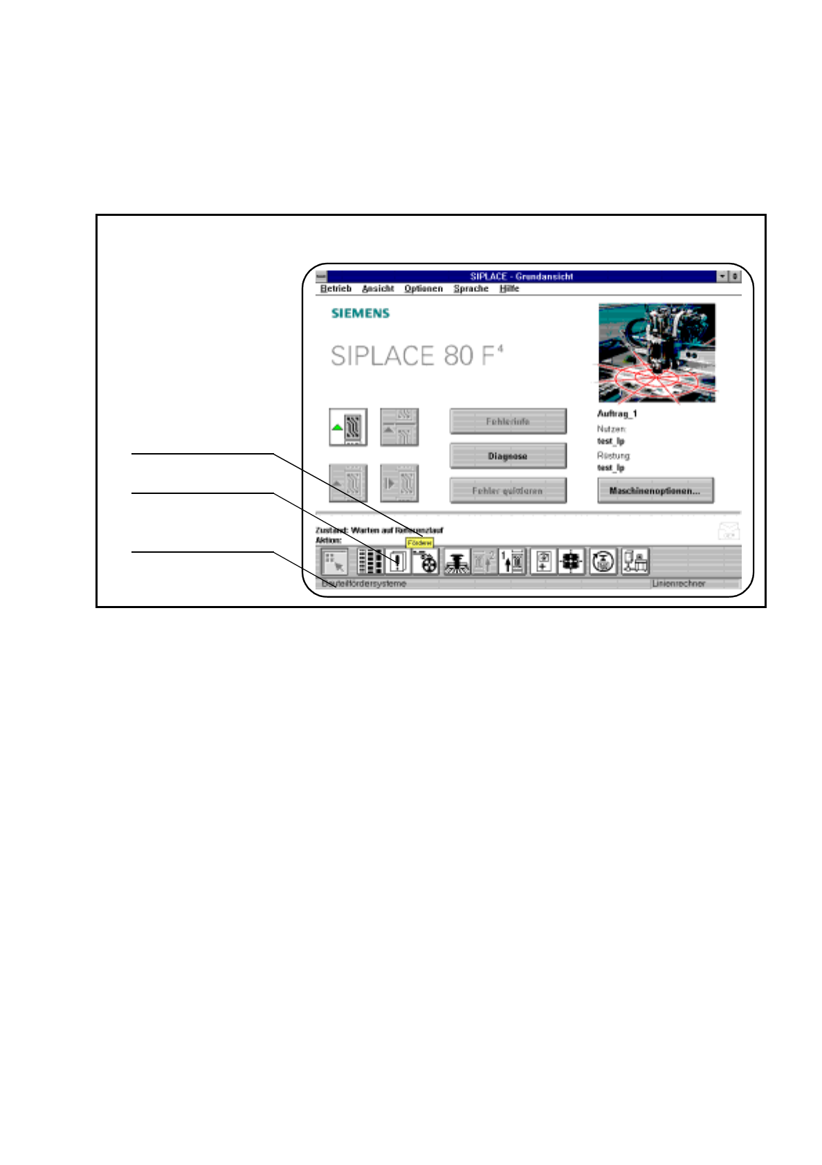 2 Einführung und Grundbegriffe Betriebsanleitung SIPLACE 80S-20/F4/F4-6 2.2 Grundlagen und Aufbau der Bedienoberfläche Ausgabe 07/97 ab Softwareversion SR.403.xx 2 - 14 2.2. 2.4 Status fenster Das Status fenst er zeig t …