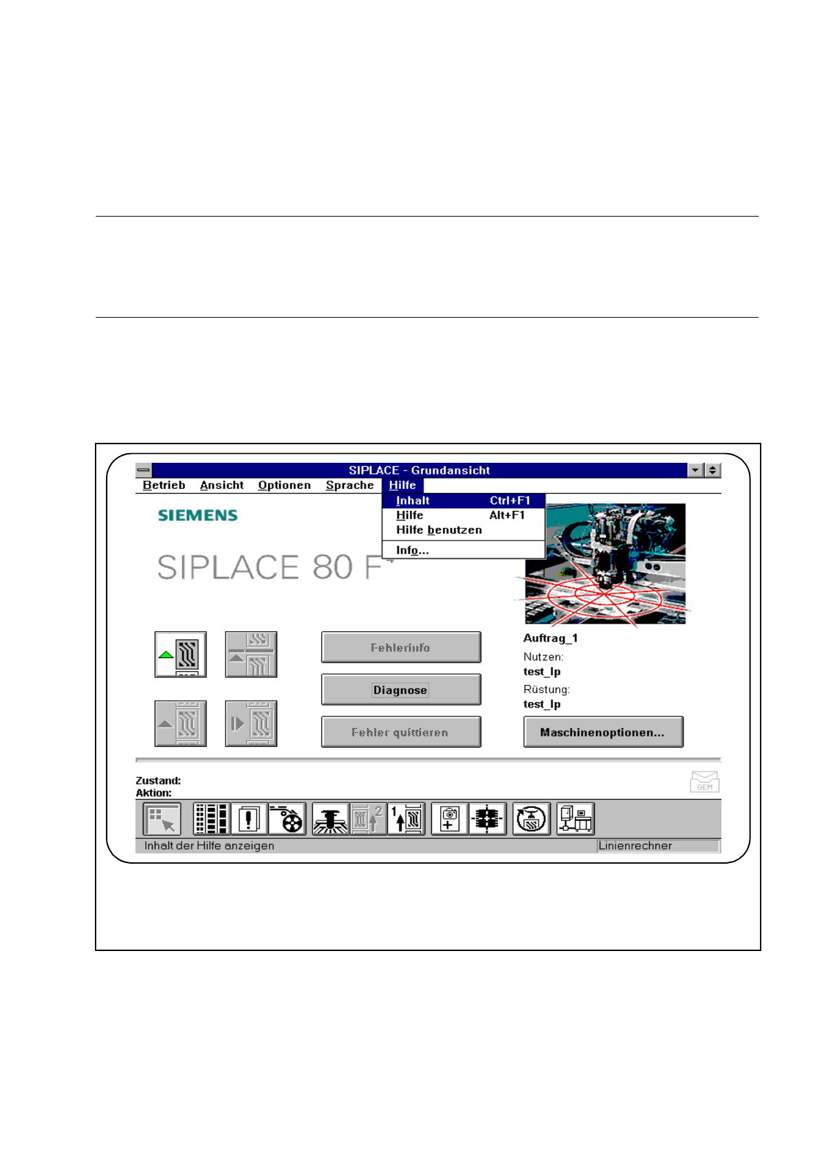 Betriebsanleitung SIPLACE 80S-20/F4/F4-6 8 Online Hilfe Ausgabe 07/97 ab S oftwareversion SR.403.xx 8.1 Online Hilfe 8 - 3 8.1 Onlin e Hilfe HINWEIS Sie habe n die M öglichk eit, Hilf e über Men üs un d Fenste r über d i…