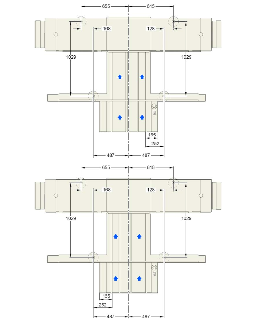 Fig. 4.3 - 6 Machine attachment surfaces for the fork-lift - dimensions in millimeters
