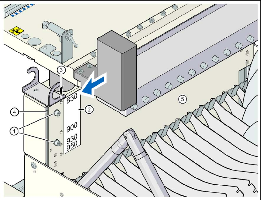 Fig. 4.4 - 2 Component trolley: PCB conveyor height 830 mm - back view, position of the hexagon socket