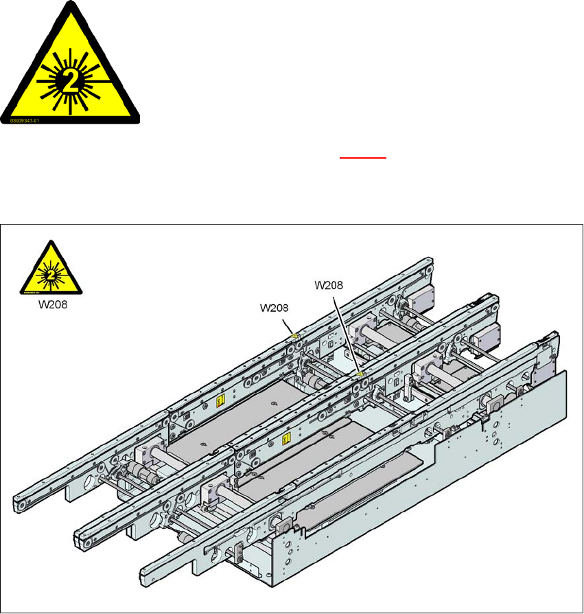 Fig. 2.2 - 10 Warning label W208 "Laser class 2" on the PCB conveyor