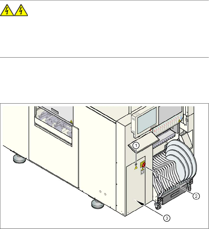 → The guards over the power supply unit and the axis unit must ONLY be opened by appropri-
