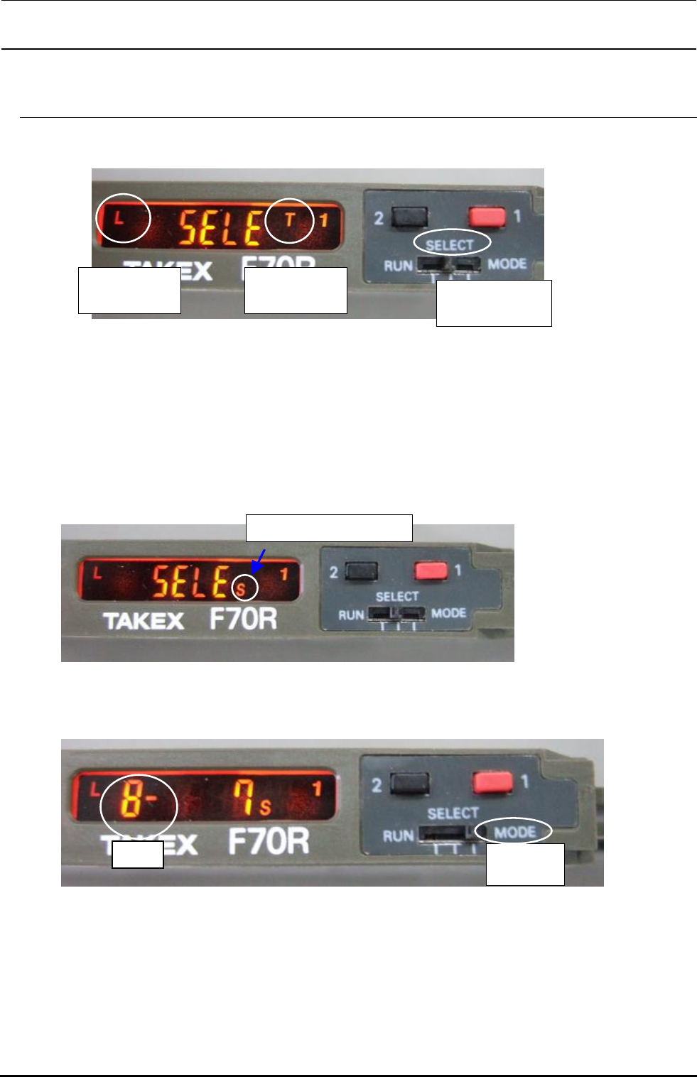① 将模式开关由【RUN】扳至【SELECT】。表示部分变为【SELE】。