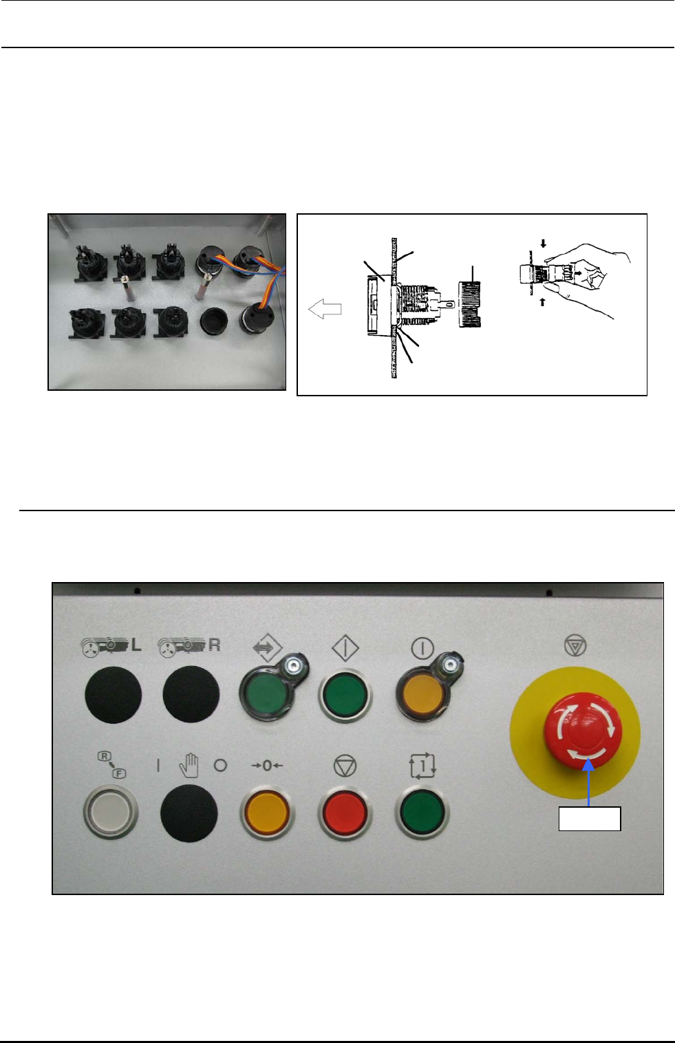 1) 紧急停止开关,拆下前、后侧的①的旋钮,把开关从保护罩内侧拆卸下来。