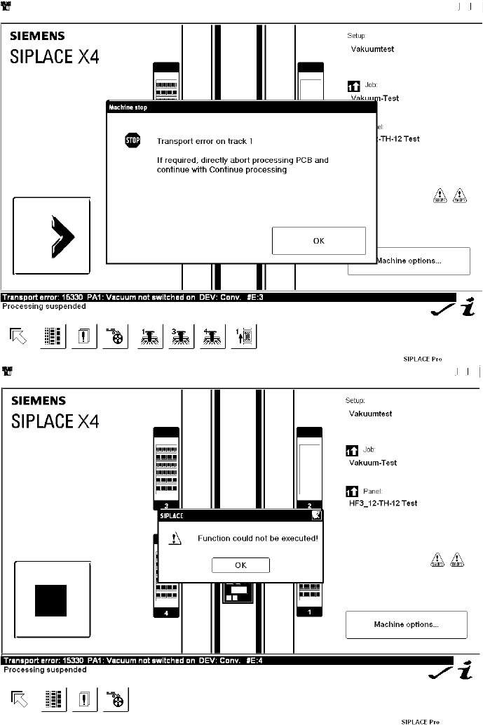 SOKO 1 Nachrüstanleitung Vakuum-Tooling AMKOR (00188501-01) SIPLACE X4 / OS-Applikation Ausgabe 03/2006 27 1 Abb. 1.10 - 2 Aufgebautes V akuum in Bestückbereich 1 zu gering Fehlerbehebung 1 – Überprüfung, ob alle V a kuu…