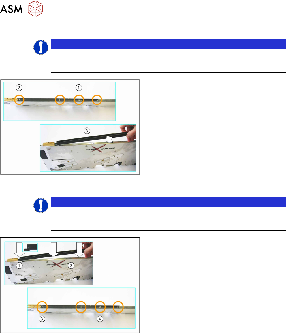 6 Repairing the X Feeder modules 6.2 Rear Sliding Guide Service Manual SIPLACE X-Feeder 4 - 88 mm 11/2017 21 6.1.2 Fitting the Front Sliding Guide NOTICE The pickup window must be fitted To prevent damage to the sprocket…