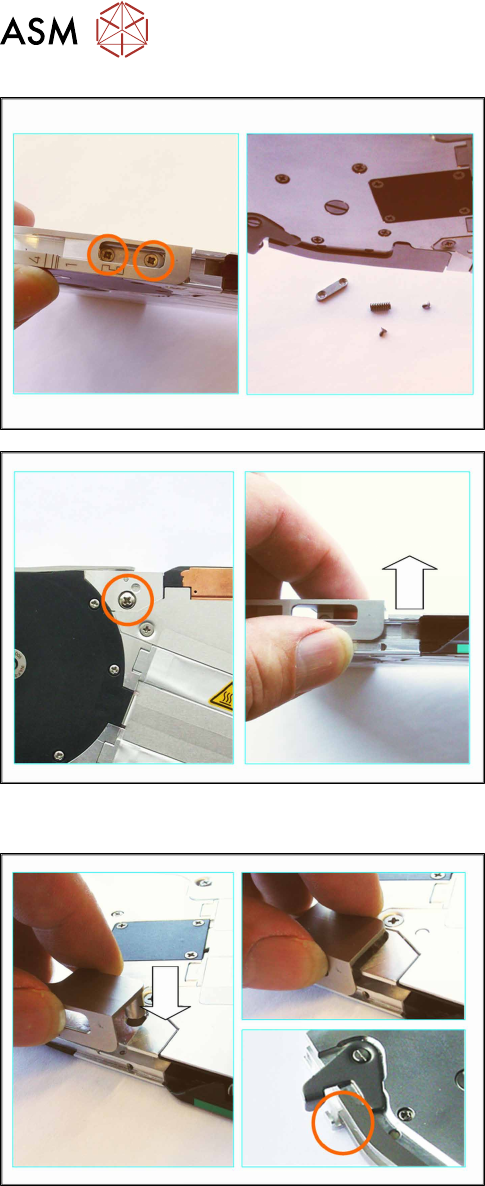 6 Repairing the X Feeder modules 6.4 Tape Drive Service Manual SIPLACE X-Feeder 4 - 88 mm 11/2017 29 ► Fix the pickup window with a bearing screw. ► Insert the compression spring into the recess in the tape drive. ► Plac…