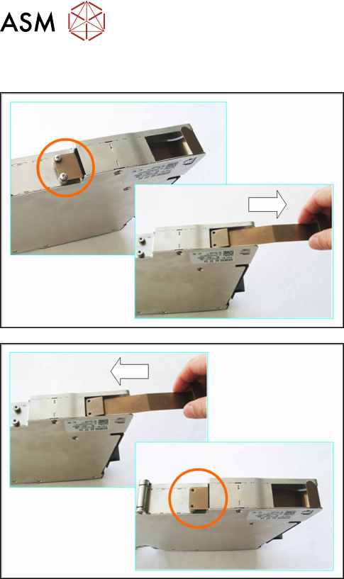 6 Repairing the X Feeder modules 6.8 Leaf Spring 88 Service Manual SIPLACE X-Feeder 4 - 88 mm 11/2017 6.8.2 Removing/Fitting the Leaf Spring (16 - 88 mm) ► Turn the feeder module so that its underside is at the top. ► Lo…
