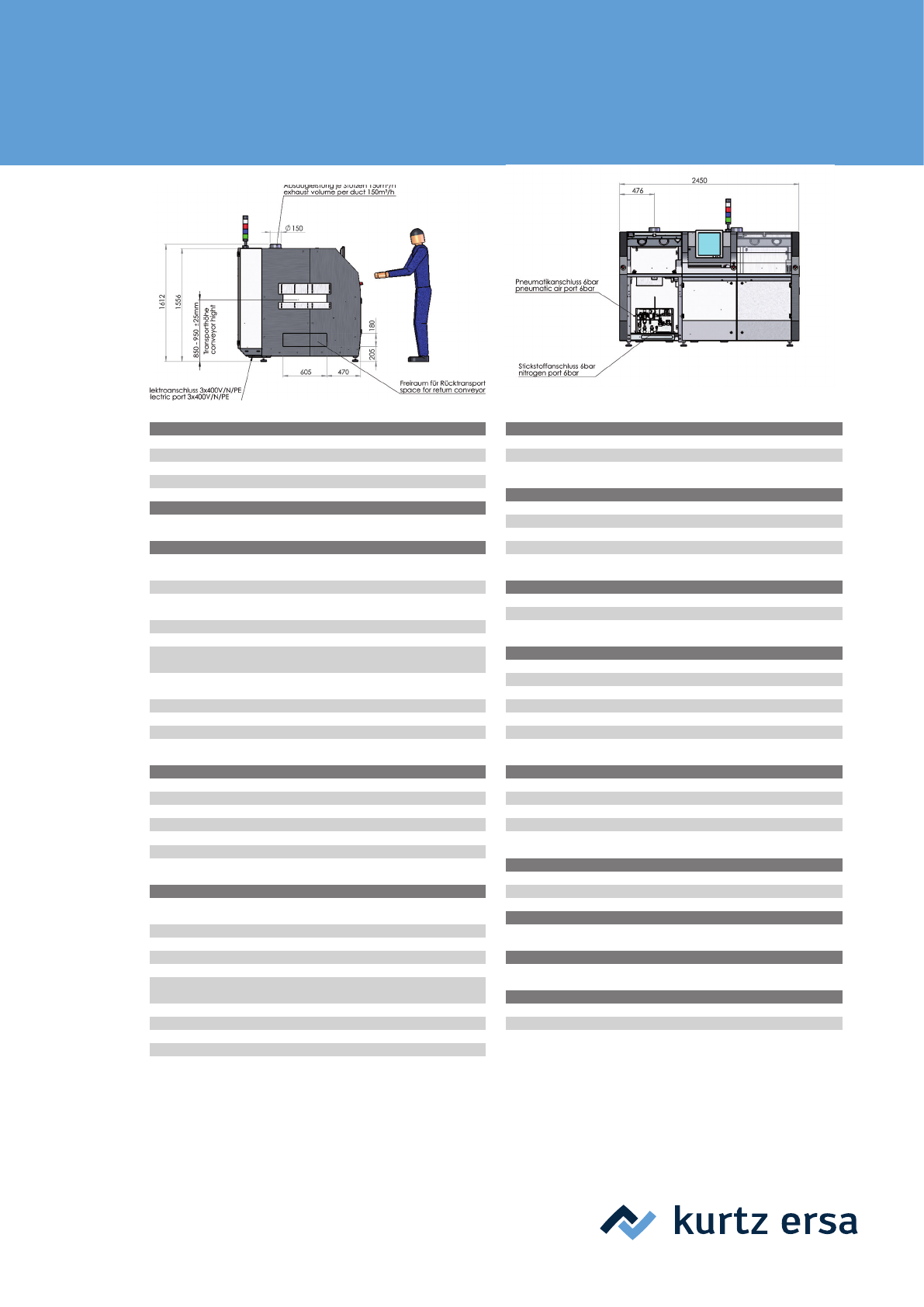 4 Er s a VERSAF LO W 3 / 45 技术参 数和 机 器 选 项 尺寸 (基 本 配 置) : 长度 : 2, 4 50 m m / 101 .5 ” 宽度 : 1,7 3 0 mm / 6 8 .1” 高度: 1,62 0 m m / 63 .8 ” 重量 (不 带焊锡 ) : 约 1,1 00 k g/2 , 4 25 l b 涂漆 : 颜色: R A L 7 03 5 / R A L 7 016 传送带 系统 …