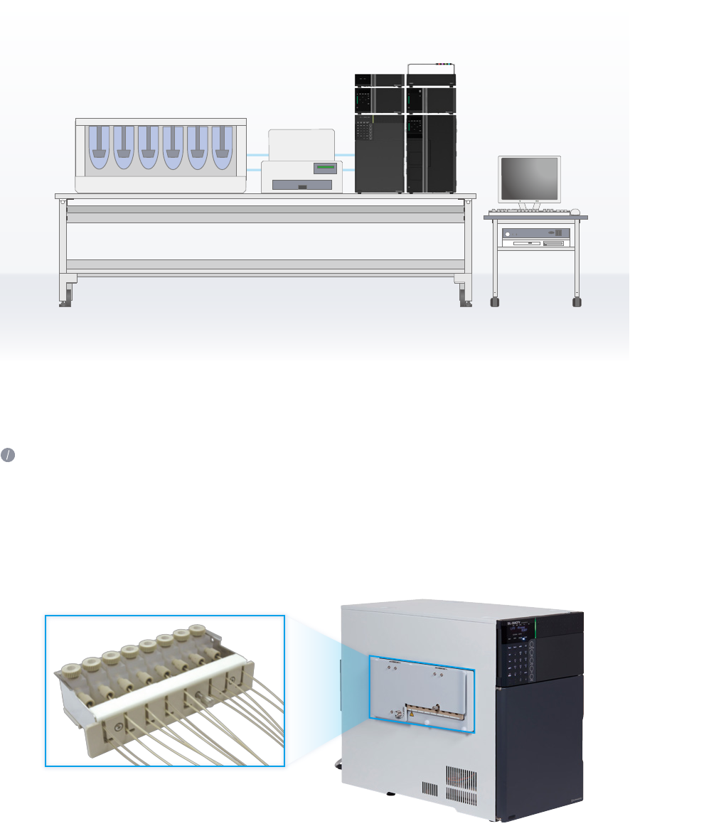 S yst em C o nf ig u r at io n f or On li ne Di ssol ut io n T esti ng T wo An alys is Mod es Pr omo t e F a ste r Di ssol ut io n T esti ng With the Nexera FV, the dissolution tester and the autosampler are connected on…