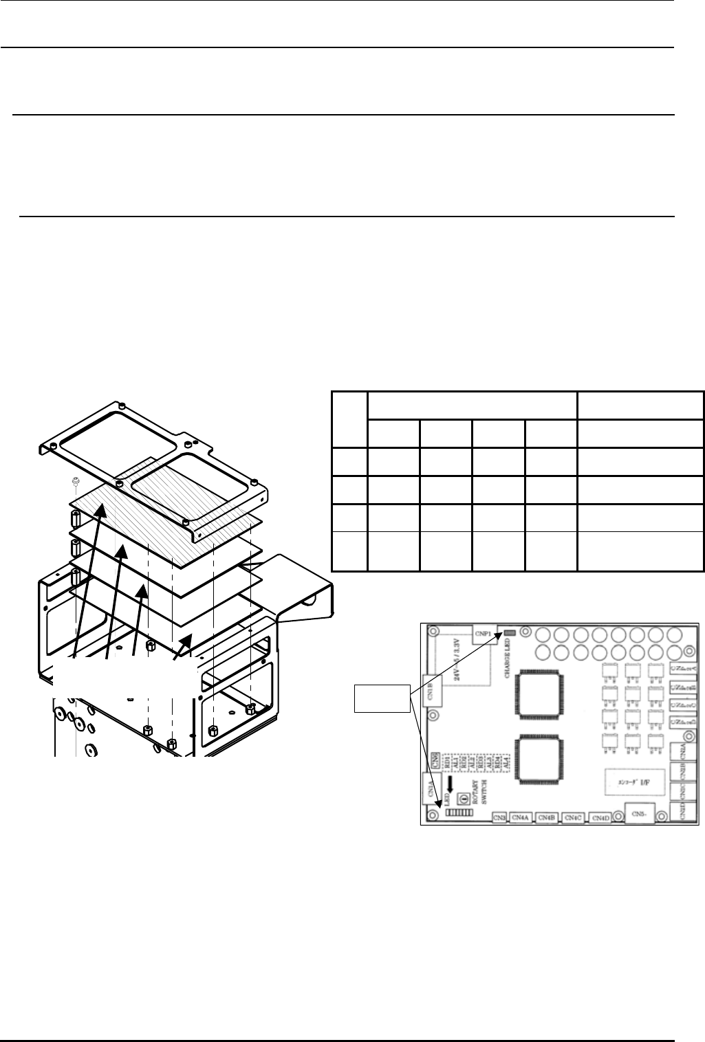 Rev1.00c 维修调整要领书 Zθ 伺服放大器要根据电路板设置旋转开关( CS1 )。 选轴旋转开关设置值 记号 伺服放大器 S W 设置值 备注 ① L1 、 2 Z/θ 轴 0 ② L3 、 4 Z/θ 轴 1 ③ L5 、 6 Z/θ 轴 2 ④ IC Z/θ 轴 3 仅 KE-2080 14-6-2. LED 显示 Zθ 伺服放大器里安装有 9 个 LED 。 该 LED 按下表所示表示各轴的状态。各轴与 LED 的对应如下…
