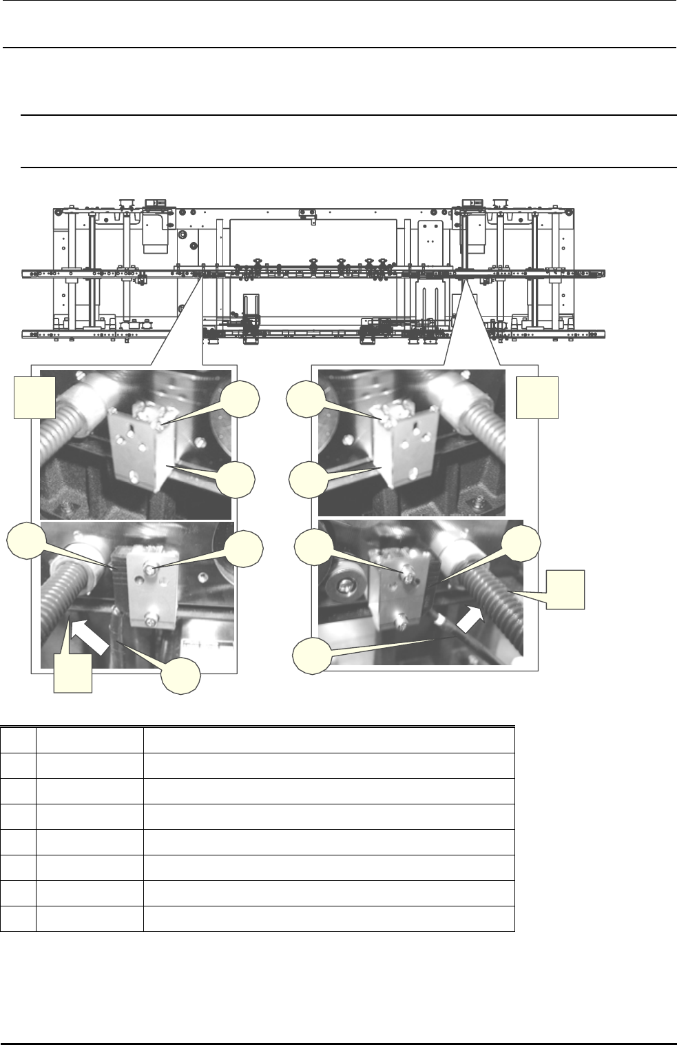 Rev1.00c 维修调整要领书 <程序> 1) 把 ① 传感器支架 A 用 ② 固定螺丝固定到可动侧轨道的左右位置。 2) 用 ⑤ 固定螺丝,把 ③ 支撑销检测传感器投光, ④ 支撑销检测传感器受光固定到 ① 传感器辅助支架 A 的 「コ」 字形之间。打开电源后调整传感器,让两个传感器光轴一致。 支撑销检测传感器安装到可动侧的轨道上。 前侧基准和里侧基准的机器,从正面看安装位置不同。 M、L M、L、E M、L 里侧基准 前侧基准 受…