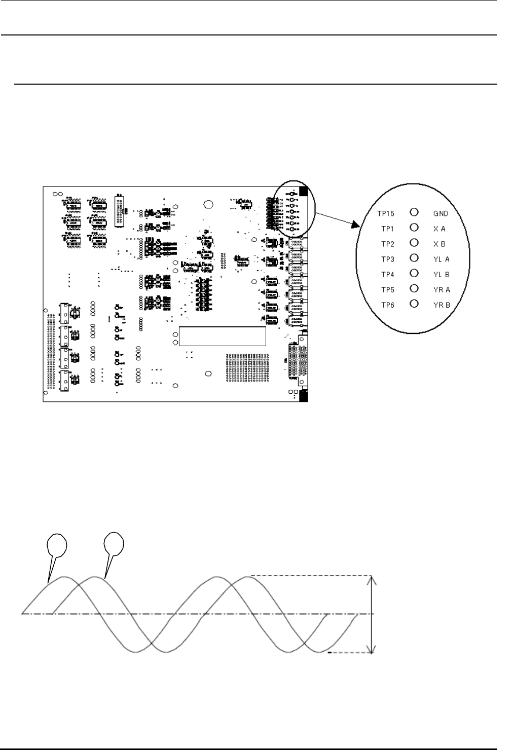4) 将示波器的测量头分别接到 GND 端子「GND(TP15)」和「 XA(TP1)」、「 YLA(TP3)」、「 YRA