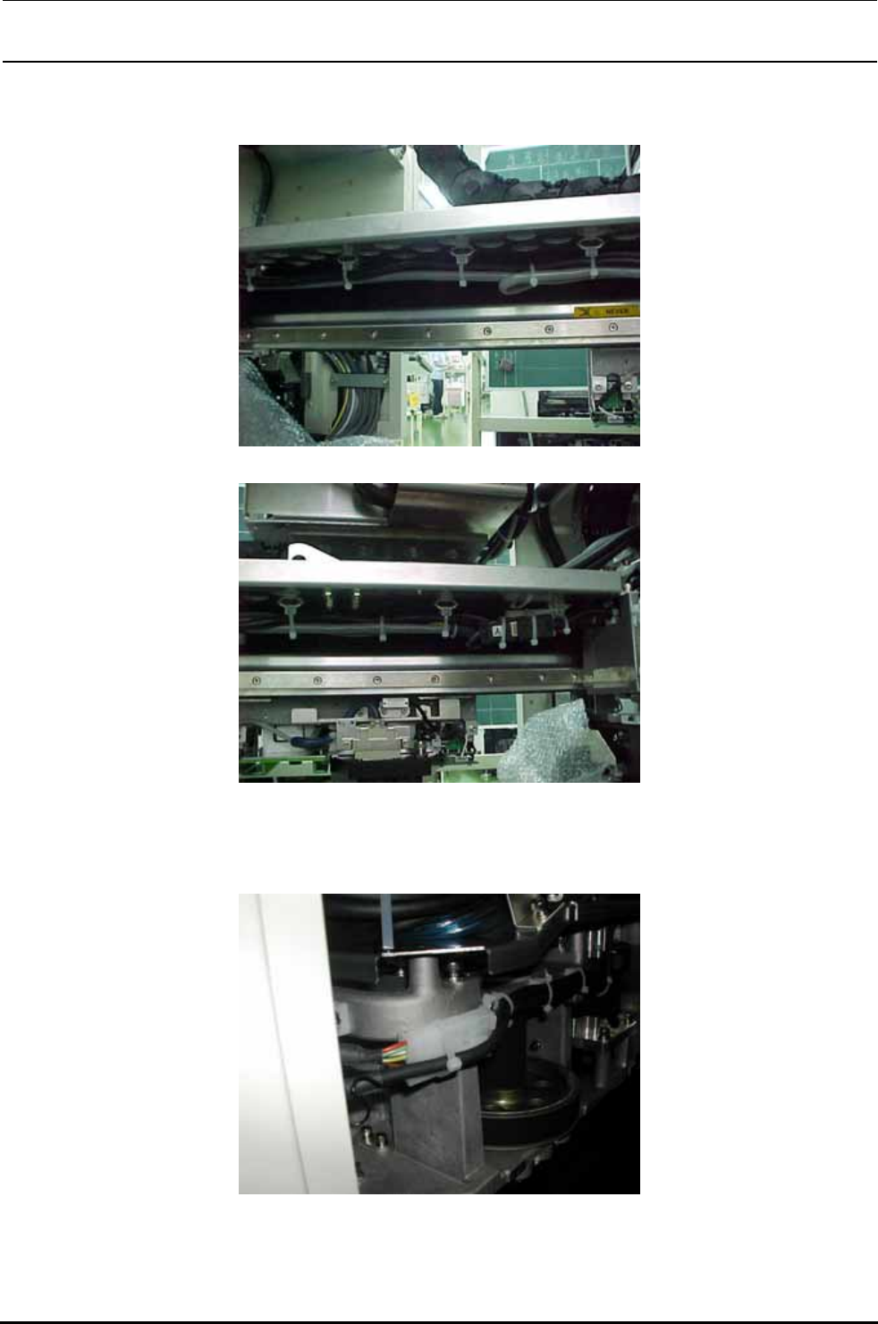 13) 将 Y 轴移动到最靠身前位置,用手压塑料导轨内部的线束,确认没有挠曲。