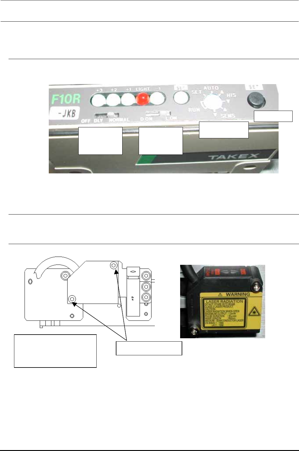 Rev1.00c 维修调整要领书 3-2-3. 放大器部 图 3-2-2 放大器的安装 左 OCC 摄像机组 坏标记传感器放大器 带垫片六角孔螺栓(×2) 摄像机托架 3-2-4. 光学纤维往放大器的安装 把光学纤 维有凸起侧插进放大器的没有 LED 侧。插到最里面之后,把插头部顺时针方向转动 ,确认光 学纤维装置不能拔出来 。 图 3-2-3 光学纤维装置的安装 凸起部 光学纤维装置 放大器 3−3