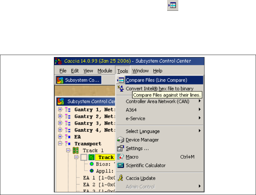 1 Caccia Bedienungskurzanleitung CACCIA Handbuch Ausgabe 04/2007 70 1 Abb. 1 - 45 Dateivergleichsmenü Fi r st Sor ce Fi l e /Sec ond Source Fi l e : Pfade zu den zwei D at eien, wel che ver gli chen werde n soll en . W ä…