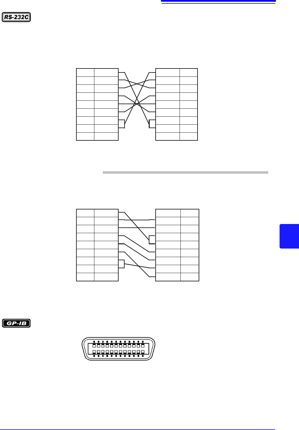 8.3 连接与设定方法 97 8 连接本仪器与 PC 时 使用 D-sub 9 针母头- D-sub 9 针母头的交叉线。 连接 D-sub25 针连接器 的仪器时 使用 D-sub 9 针母 头- D-sub 25 针公头的交叉线。 如图所示, RTS 与 CTS 进行了短路连接,因此请使用 连接到 DCD 上的交叉线 。 “ D-sub 25 针公头- Dsub 25 针公头的交叉线”与 “ 9 针- 25 针变换转换器”组 合时,…