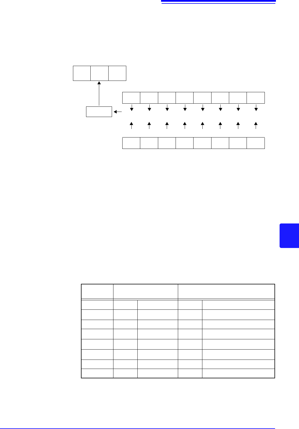 8.4 通讯方法 108 事件状态寄存器 0 ( ESR0 )、 1 ( ESR1 ) 和事件状态有效寄存器 0 ( ESER0 )、 1 ( ESER1 ) 各寄存器的 读出和写入 GP-IB 命令 依据接口功能,可以使用以下 命令。 7 位 6 位 5 位 4 位 3 位 2 位 1 位 0 位 –– ERR ––– INDEX EOM &&&&&&&& 7 位 6 位…