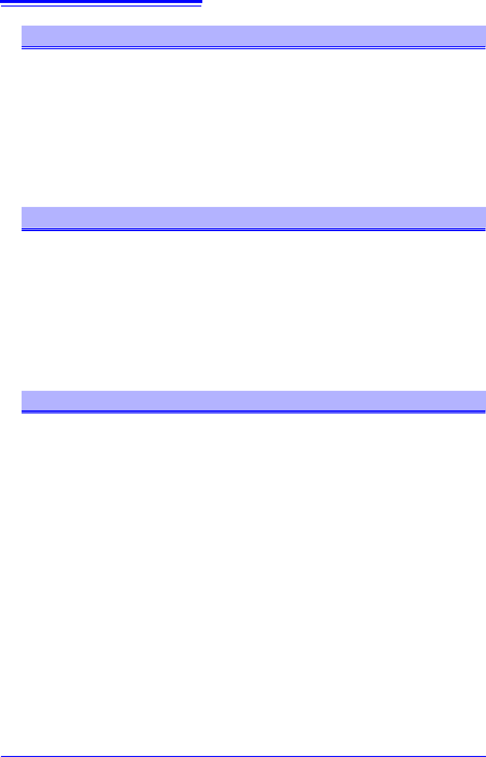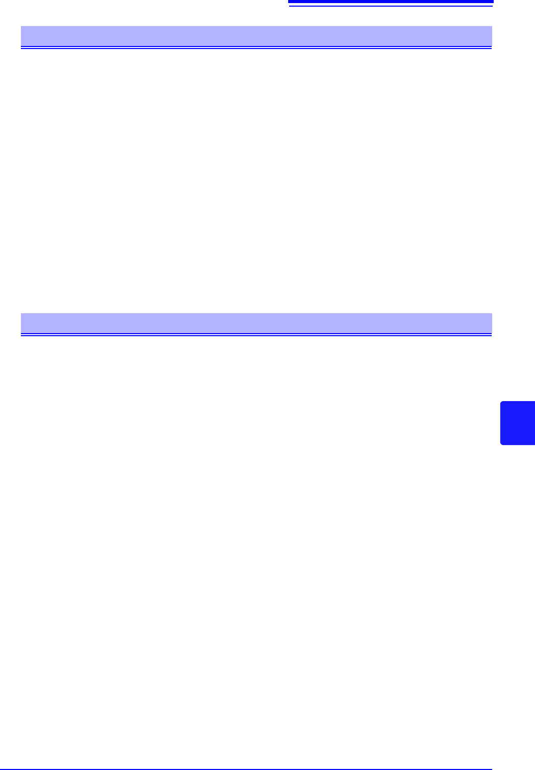 8.6 信息参考 125 8 比较器判定蜂鸣器的设定和查询 语法 命令 :CALCulate:LIMit:BEEPer <OFF/HL/IN /BO TH 1/BO TH2> 查询 :CALCulate:LIMit:BEEPer? 响应 <OFF/ HL/ IN/ BO TH1/ BO TH2> OFF ............. .. 蜂鸣器不鸣响。 HL ............... .. Hi 、 Lo …