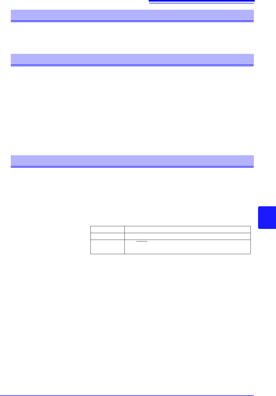 8.6 信息参考 145 8 查询 响应 :TRIG:DEL? 0.058 触发延迟时间被设定为 0.0 58 秒。 触发延迟时间的设定和查询 最新测量值的读出 语法 查询 :FETCh? 响应 < 电阻测量值 (NR3)> , < 电压测量值 (NR3)> ( Ω V 功能) < 电阻测量值 (NR3)> ( Ω 功能) < 电压测量值 (NR3)> ( V 功能) 说明 查询 读出最后…