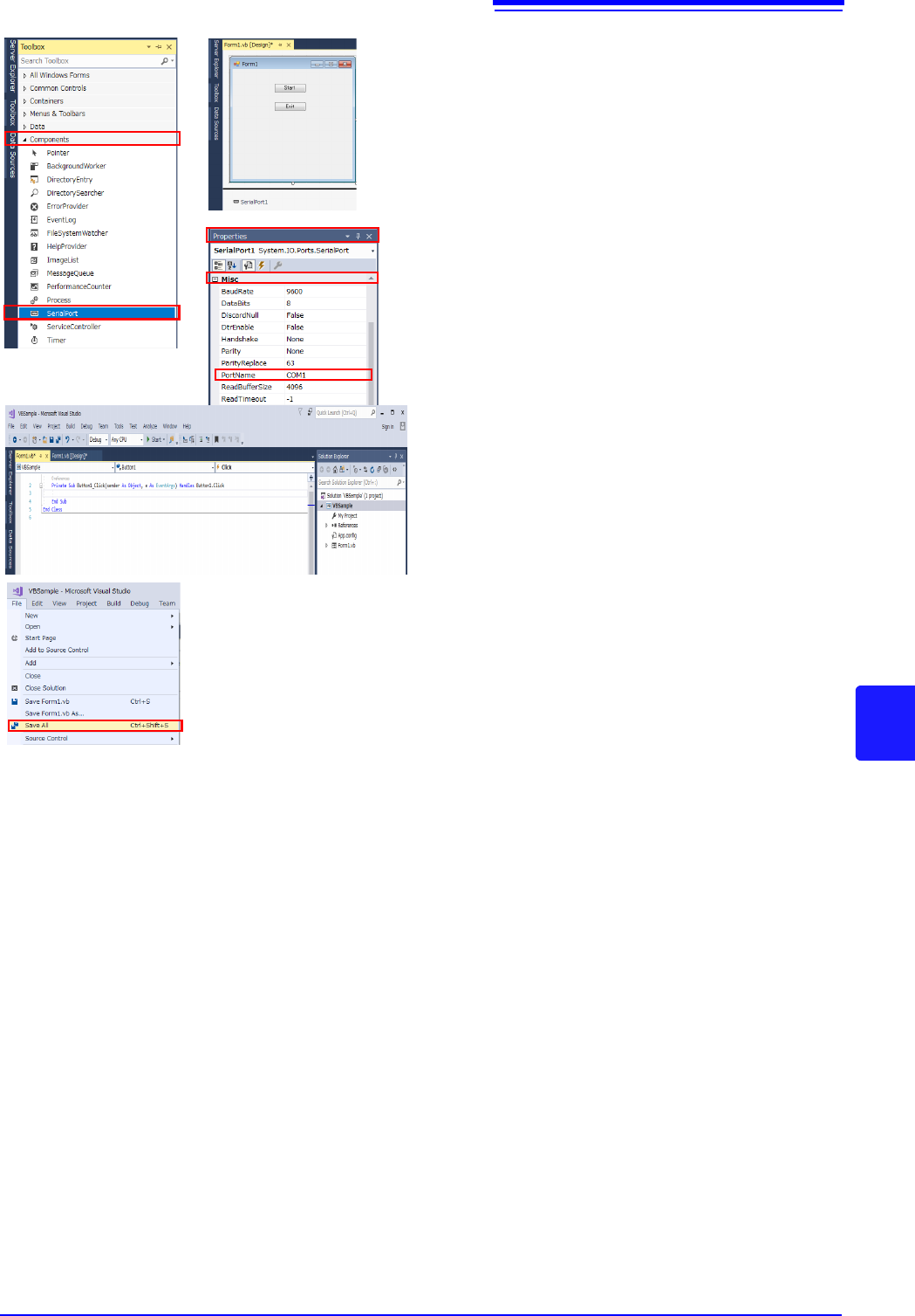 8.8 示例程序 152 以下示例说明使用 Windows ® 开发语言 Visual Studio ® 2017 Professional Edit ion ,经 由 RS-232C 通过计算机操作本仪器,取得测量值后保存到 文件中的方法。 下面说明使用 Visual Basic ® 2017 生成程序的步骤。 生成设计的步骤为 Visual Basic ® 的示例。 Visual C# ® 可按照几乎与 Visual Basic ®…