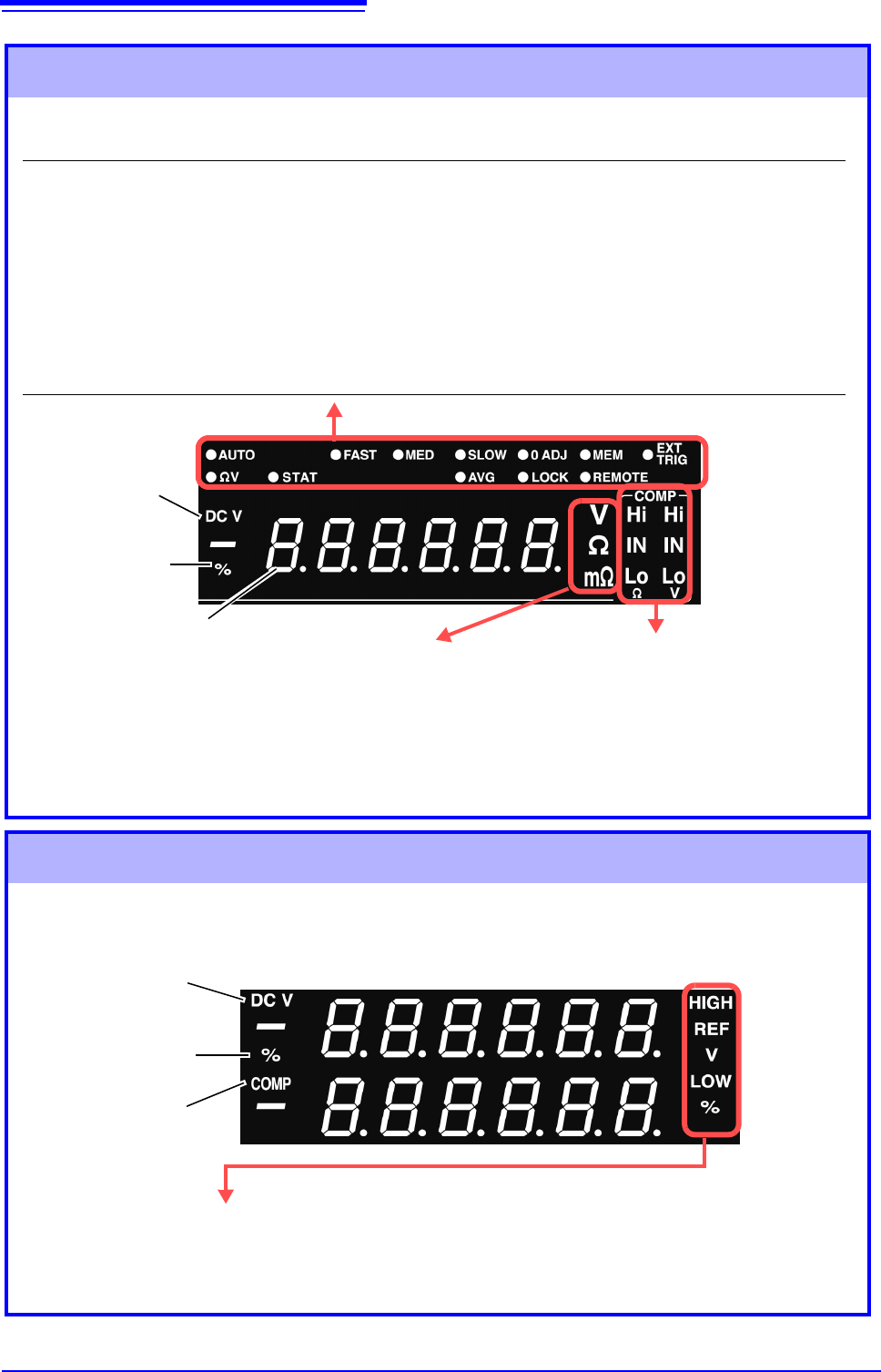 HIGH、 LOW 显示比较器设定值的绝对值时 (测量期间)或进行其他设定时点亮