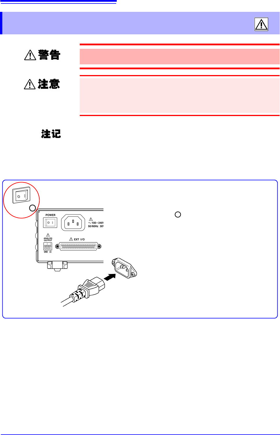 2 确认电源电压和本仪器的相一致 (100 V