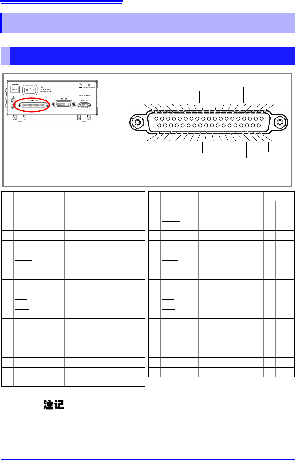 为了防止发生触电事故和仪器故障,连接 EXT I/O 连接器的配线时,请遵守下述