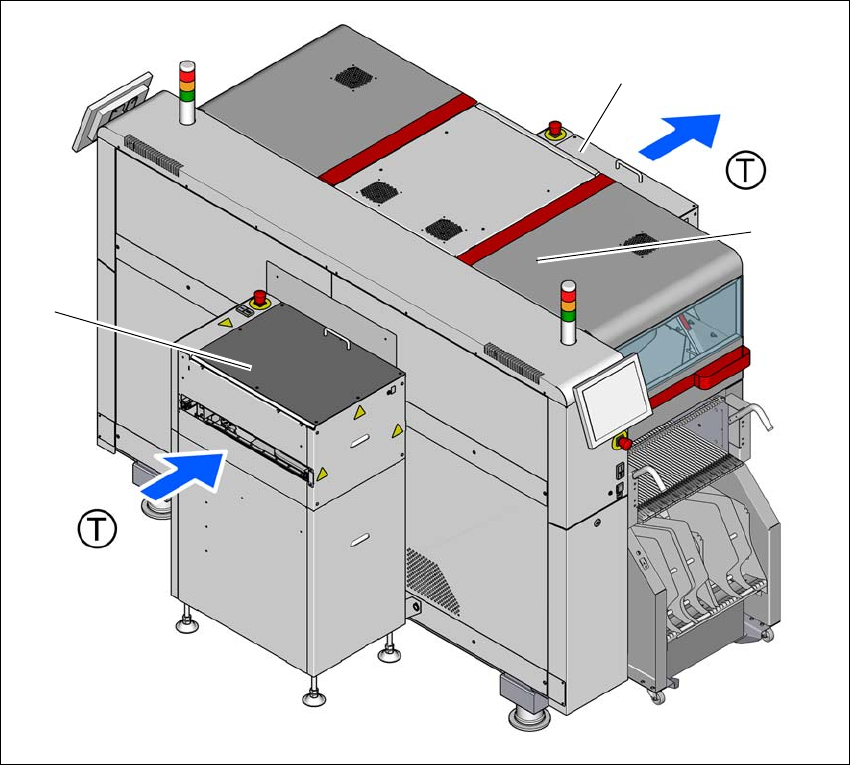 1 Einleitung Montage- und Betriebsanleitung SIPLACE TX 1.2 Übersicht Shuttle Extension Ausgabe 11/2018 8 1.2.2 Shuttle Extension an der T ransporteingabeseite des SIPLACE Automaten 1 Abb. 1.2 - 2 Shuttle Extension- Ausga…