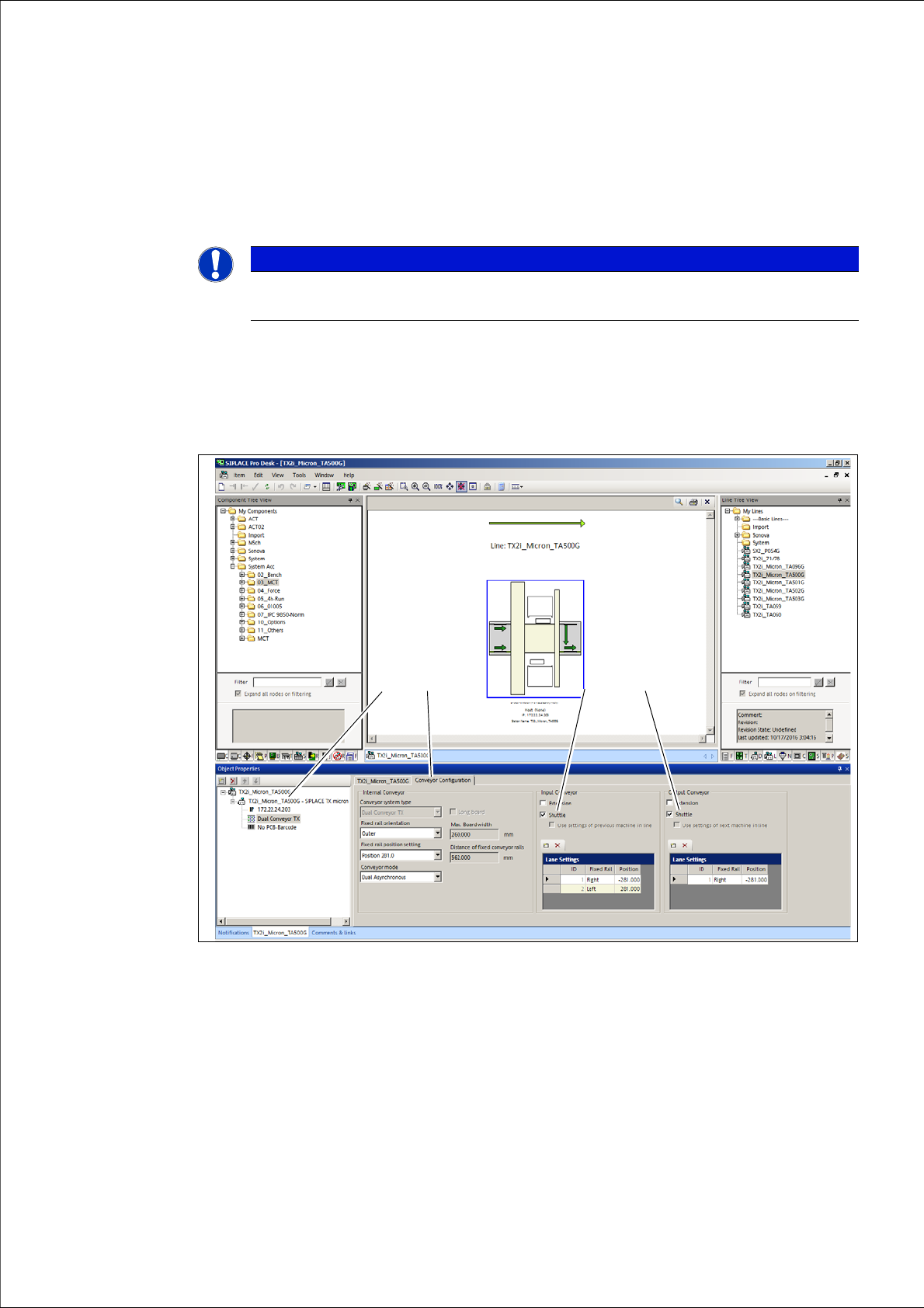 – 工作站输入传送导轨配备 SIPLACE TX 传送导轨输送机。 可以在轨道设置列表中手动配