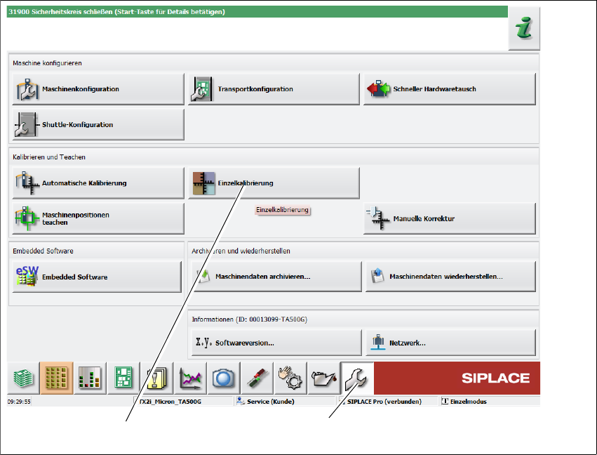 Montage- und Betriebsanleitung 5 Kalibrierung Shuttle Extension Ausgabe 11/2018 5.2 Kalibrierung durchführen 63 Abb. 5.2 - 2 Stationssoftware - Ansicht „Einzelkalibrierung“ Klicken Sie auf das Symbol Shuttle-Kalibrieru…