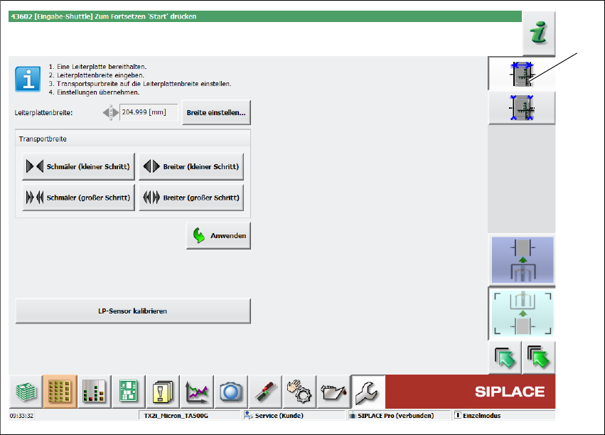 Breite der Leiterplatte eingestellt werden. Stellen Sie dabei sicher, dass die Leiterplatte zwar frei