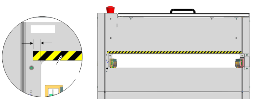 Bringen Sie die 03153427- Sicherheitsmarkierung 9x600 mm am Shuttle-Maschinengehäuse