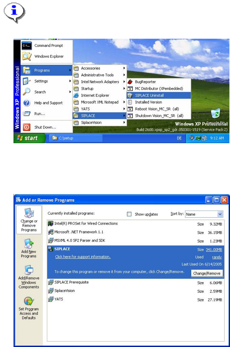 → Open the Start menu and choose Programs Æ SIPLACE Æ SIPLACE Uninstall.
