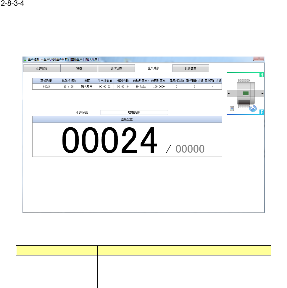 第 1 部 基本篇 第 2 章 生产 2- 52 供应装置 显示生产 中的供料器的状 态。 供给 装置 为 TR5SNK 时,显示 以下信息 。