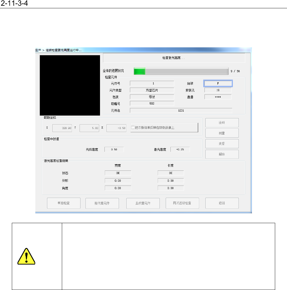 连续检测激光高度中,显示正在进行连续检查的元件内容/吸取位置/激光高度,依次显示执行中的处