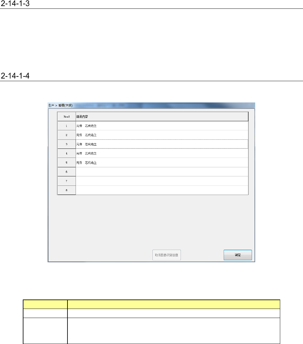 第 1 部 基本篇 第 2 章 生产 2- 140 跟踪 当暂停画面显示 时按操作区域的 [ 跟踪 ] 按 钮,可进入吸 取位置 的 跟踪模 式。 对重试超次、或 发生无 元件的所有供 应装置,均可 进行吸取位置跟踪。 但被设定为不使 用的供料器,不能成为对 象。 详细情况请参见 「 2- 13 - 7 摄像机跟踪吸取位置 」 。 详细信息 在暂 停画面 中按 [ 详细信息 ] 按钮时,会 显示详细信息 画面。 (1) 错误 H ead…