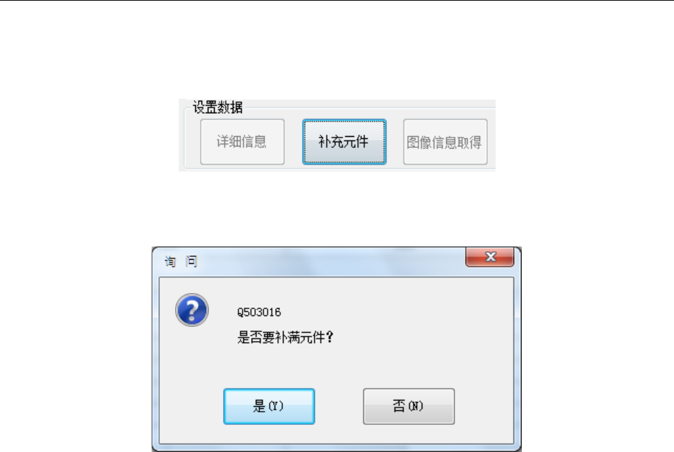 按[ 是 ]按 钮后,执行补充元件。补充对象为带式,管式供应的元件。元件剩余数为 0 已经无元件的,