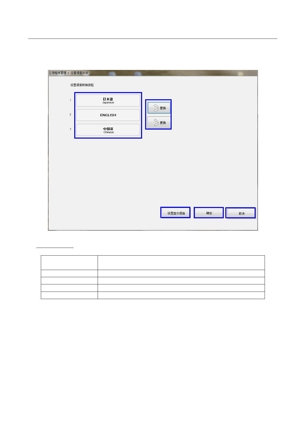 ②更换 可以改变语言转换菜单的显示顺序。