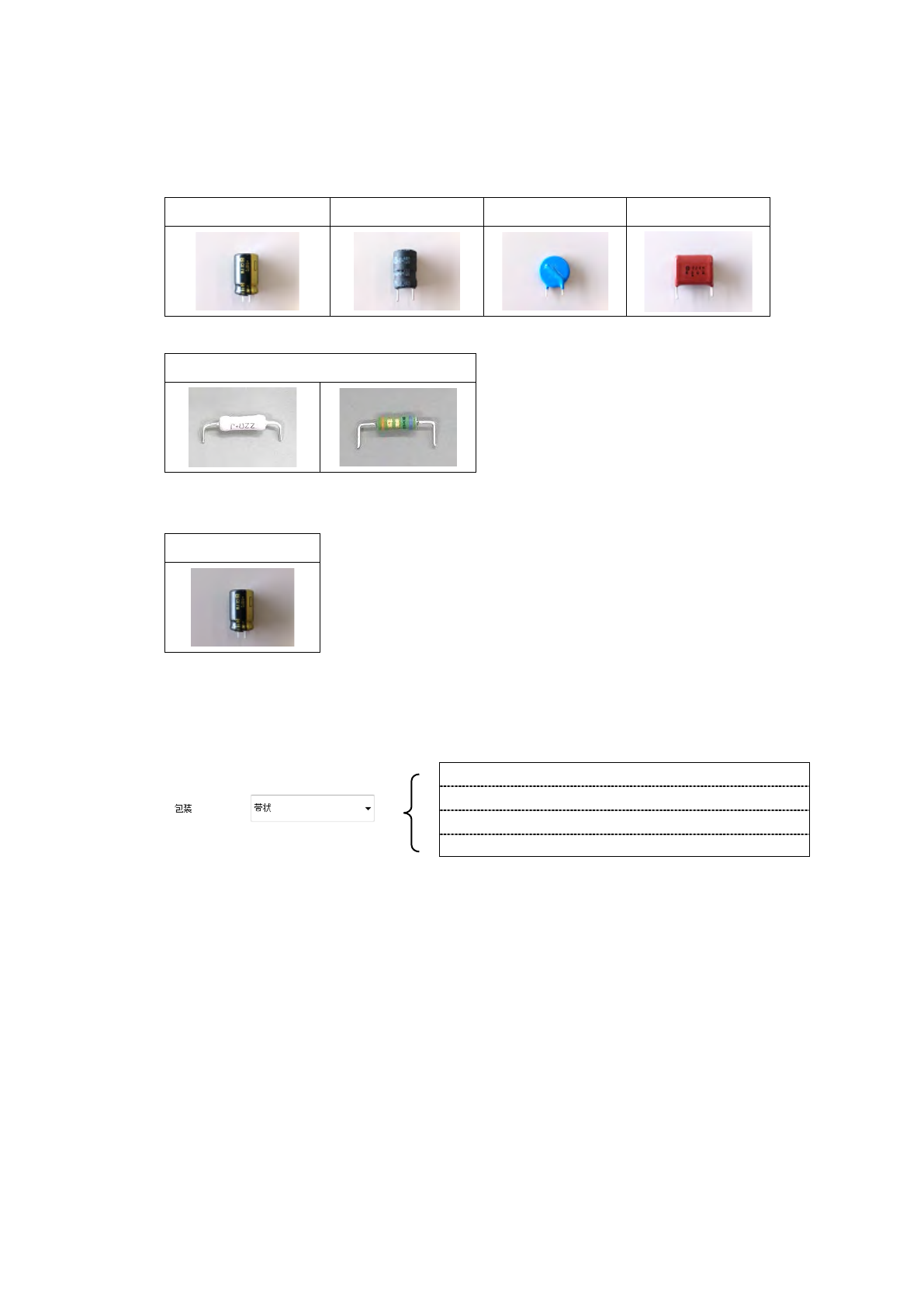 使用 JM-100 可以对如下所示插入元件进行贴片。插入元件是指下述元件,分别拥有管脚部分及