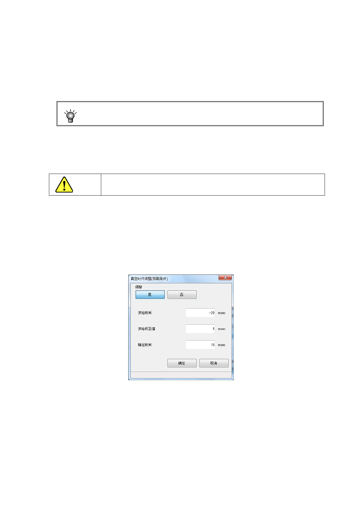 将调整设定为「是」,可按照 ms 为单位输入“开始时间”、“开始校正值”、“稳定时间”的调整。