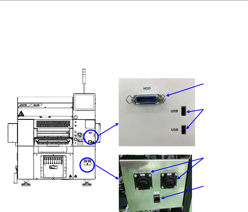 连接到主机上游侧的机器时,将其连接到 JOINT IN(左侧连接器)。