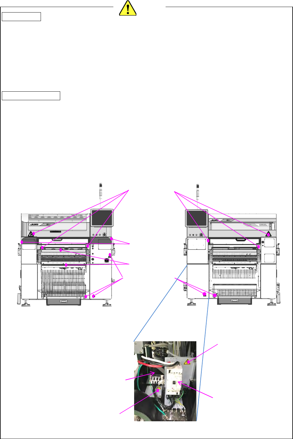1. 为了防止人身事故,在接通电源前,请确认连接器、电缆类无损伤、脱落、松弛等。