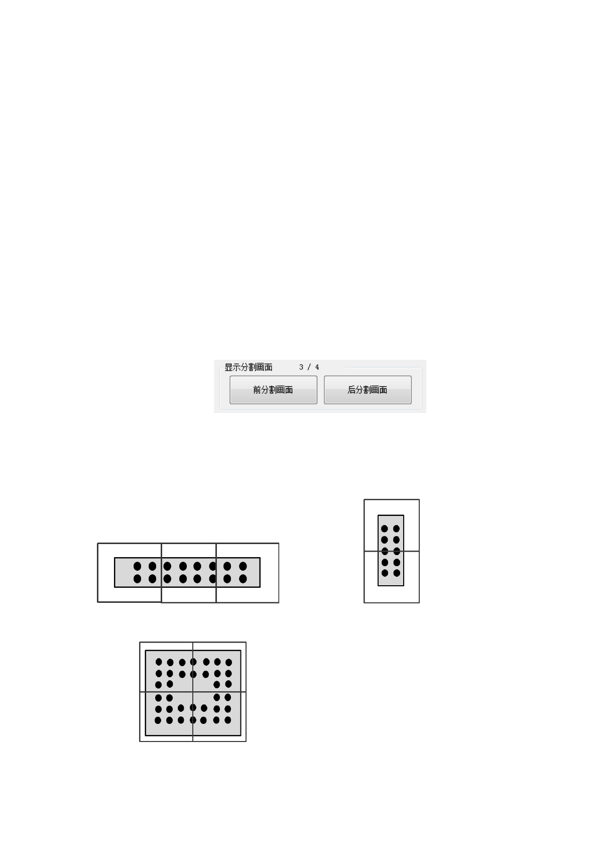 在「分割画面表示」旁,显示现在是第几个分割画面。如显示 3/4(表示是总共 4 分割识别中的第