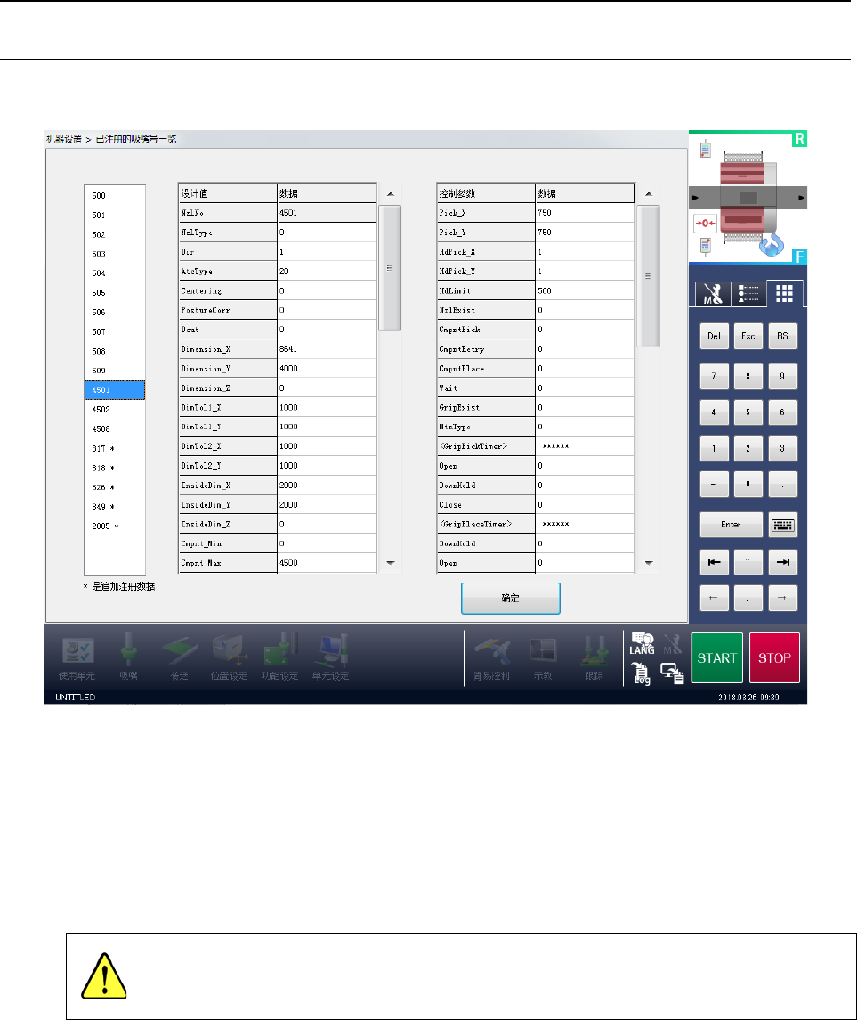 左侧的列表框显示目前已注册的吸嘴信息的吸嘴号码一览。