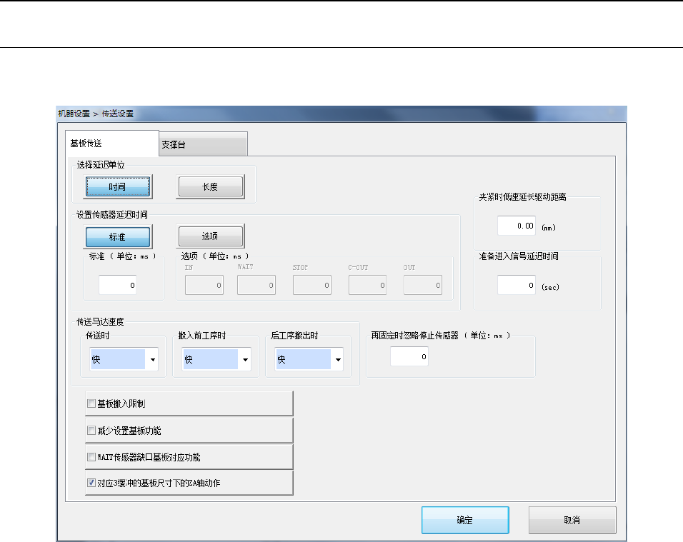 点击各选项卡,可指定 [基板传送]、[支撑台]。