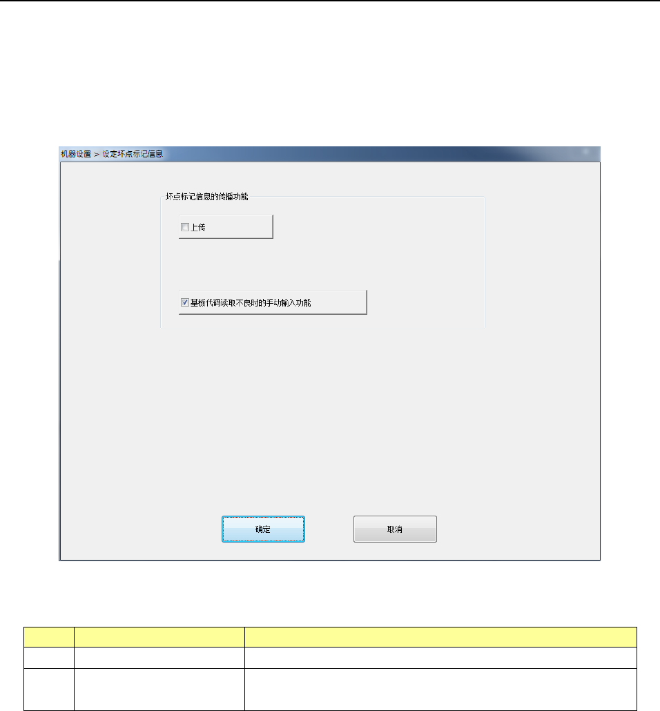 选择设定坏板标记信息,则显示以下画面。可以设定是否上传,以及基板代码读取不良时手动输