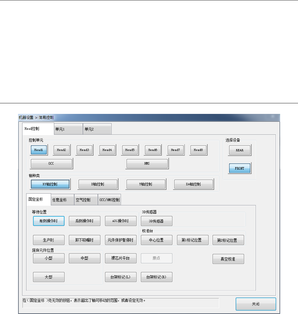 [控制单元]按钮与 [轴类型]按钮移动指定的控制单元,进行Head吸嘴的空气控制、OCC照明控